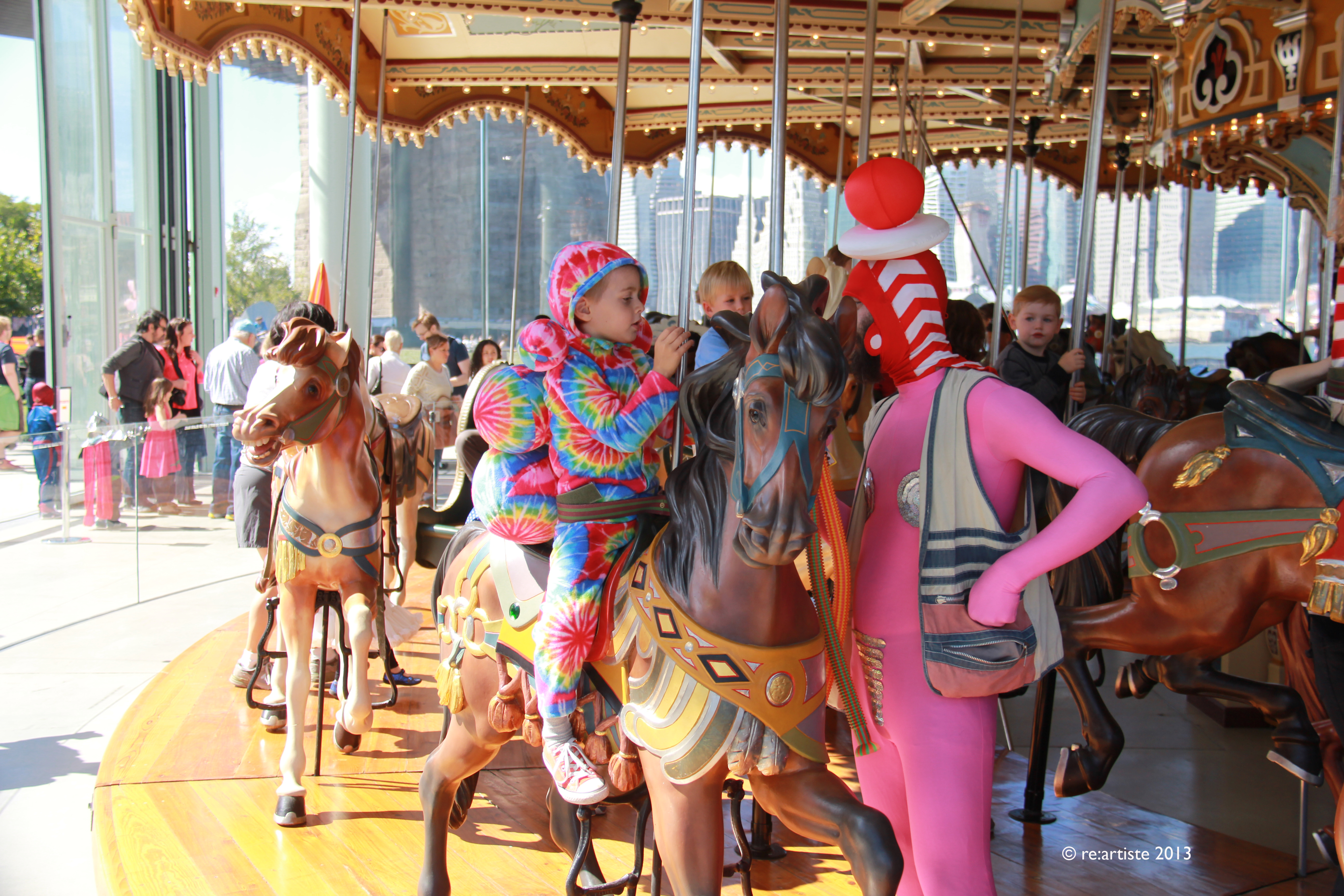 Andrey Bartenev, a charismatic artist, led the procession through the streets of DUMBO to the famous Jane’s Carousel and then Tobacco Warehouse pavilion where the party culminated with dancing surrounded by real bubbles, catching the sun rays and creating the rainbows.