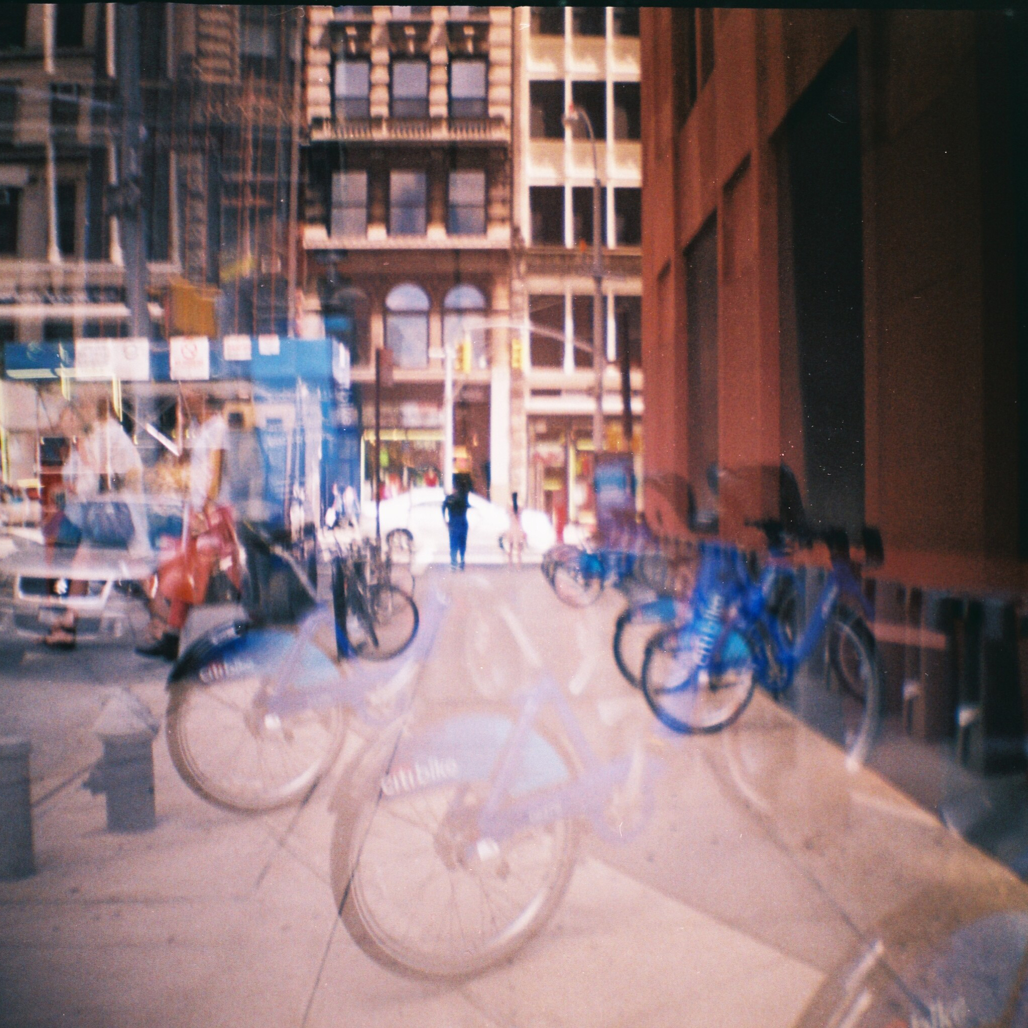 Rebecca Pearson surprised the exhibition viewers with her technique – film photography. She masters film camera with the great success, liberally experimenting with clicks and angles. Rebecca is drawn by the energy of the city – the bustle of shoppers, a New Yorker hailing a cab, the traffic, the majestic Grace Church, bicycles everywhere… Her series exhibited at the current show is the second of her “Manhattan Corners” taken with her film camera and undergone no processing at all. Masterfully done!