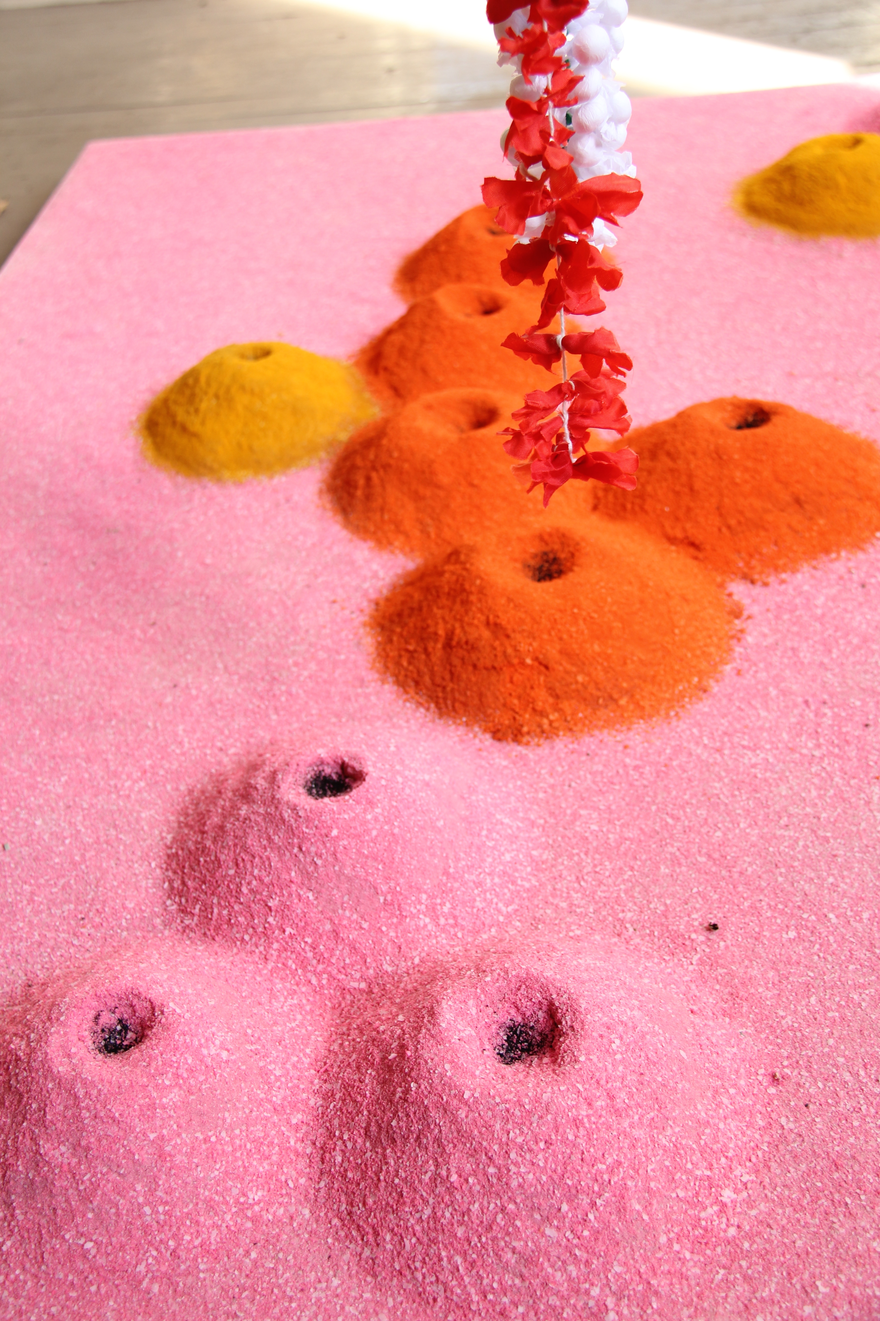 Jayanthi Moorthy, Painter, Mixed Media Artist. On the floor – where Jayanthi creates her one-of-a-kind, live installations – she works with natural materials such as rice flour, sand, and Indian spices, and her artistic expression takes the form of a daily ritual.
